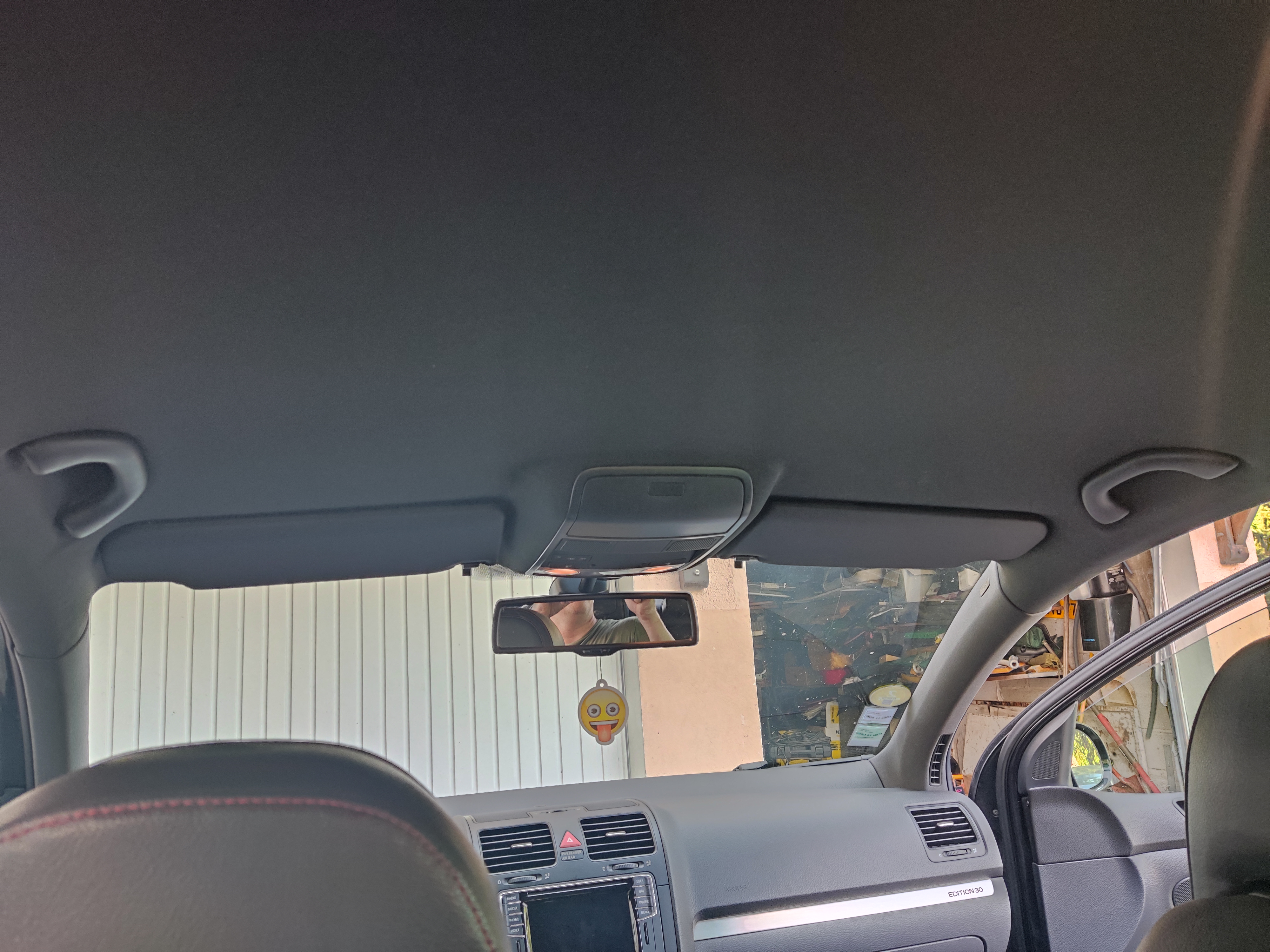 Ciel de toit de Golf 5 GTI qui se décollait. Refait par Autolux, comme neuf, rapide et travail de qualité !!! (J'ai fourni le tissu moussé fourni car GTI édition 30, couleur spécifique).
